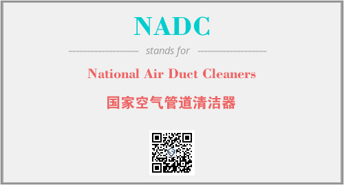 英文缩略词“NADC”经常作为“National Air Duct Cleaners”的英文缩写来使用,中文表示:“国家空气管道清洁器”。本文将详细介绍英文缩写词NADC所代表英文单词,其对应的中文拼音、详细解释以及在英语中的流行度。此外,还有关于缩略词NADC的分类、应用领域及相关应用示例等。