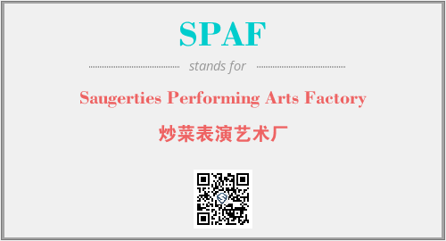 上述内容是“Saugerties Performing Arts Factory”作为“SPAF”的缩写,解释为“炒菜表演艺术厂”时的信息,以及英文缩略词SPAF所代表的英文单词,其对应的中文拼音、详细解释以及在英文中的流行度和相关分类、应用领域及应用示例等。