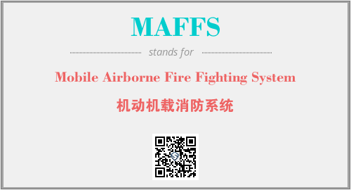英文缩略词“MAFFS”经常作为“Mobile Airborne Fire Fighting System”的英文缩写来使用,中文表示:“机动机载消防系统”。本文将详细介绍英文缩写词MAFFS所代表英文单词,其对应的中文拼音、详细解释以及在英语中的流行度。此外,还有关于缩略词MAFFS的分类、应用领域及相关应用示例等。