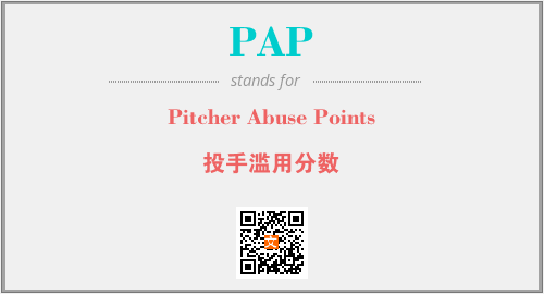 英文缩略词“PAP”经常作为“Pitcher Abuse Points”的英文缩写来使用,中文表示:“投手滥用分数”。本文将详细介绍英文缩写词PAP所代表英文单词,其对应的中文拼音、详细解释以及在英语中的流行度。此外,还有关于缩略词PAP的分类、应用领域及相关应用示例等。