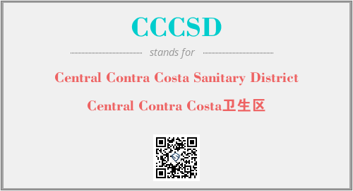 英文缩略词“CCCSD”经常作为“Central Contra Costa Sanitary District”的英文缩写来使用,中文表示:“Central Contra Costa卫生区”。本文将详细介绍英文缩写词CCCSD所代表英文单词,其对应的中文拼音、详细解释以及在英语中的流行度。此外,还有关于缩略词CCCSD的分类、应用领域及相关应用示例等。
