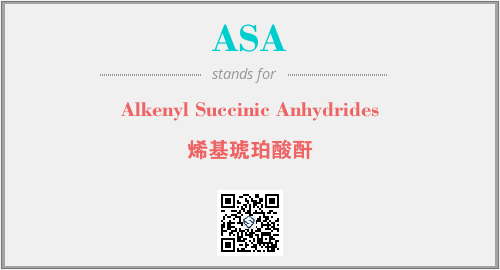 上述内容是“Alkenyl Succinic Anhydrides”作为“ASA”的缩写,解释为“烯基琥珀酸酐”时的信息,以及英文缩略词ASA所代表的英文单词,其对应的中文拼音、详细解释以及在英文中的流行度和相关分类、应用领域及应用示例等。