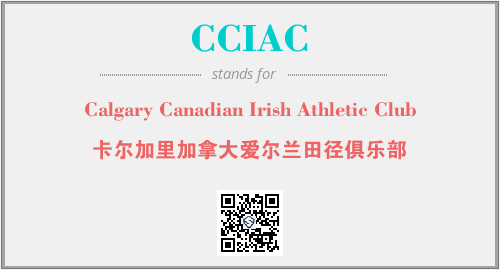 上述内容是“Calgary Canadian Irish Athletic Club”作为“CCIAC”的缩写,解释为“卡尔加里加拿大爱尔兰田径俱乐部”时的信息,以及英文缩略词CCIAC所代表的英文单词,其对应的中文拼音、详细解释以及在英文中的流行度和相关分类、应用领域及应用示例等。