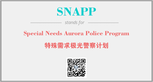 以上为Special Needs Aurora Police Program英文缩略词SNAPP的中文解释,以及该英文缩写在英语的流行度、分类和应用领域方面的信息。