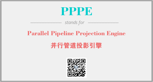 上述内容是“Parallel Pipeline Projection Engine”作为“PPPE”的缩写,解释为“并行管道投影引擎”时的信息,以及英文缩略词PPPE所代表的英文单词,其对应的中文拼音、详细解释以及在英文中的流行度和相关分类、应用领域及应用示例等。