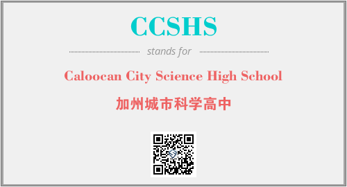 英文缩略词“CCSHS”经常作为“Caloocan City Science High School”的英文缩写来使用,中文表示:“加州城市科学高中”。本文将详细介绍英文缩写词CCSHS所代表英文单词,其对应的中文拼音、详细解释以及在英语中的流行度。此外,还有关于缩略词CCSHS的分类、应用领域及相关应用示例等。