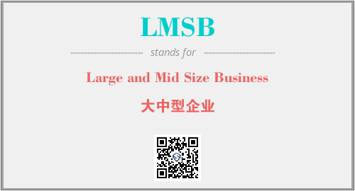 上述内容是“Large and Mid Size Business”作为“LMSB”的缩写,解释为“大中型企业”时的信息,以及英文缩略词LMSB所代表的英文单词,其对应的中文拼音、详细解释以及在英文中的流行度和相关分类、应用领域及应用示例等。