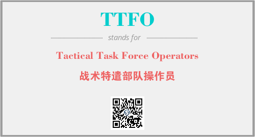 英文缩略词“TTFO”经常作为“Tactical Task Force Operators”的英文缩写来使用,中文表示:“战术特遣部队操作员”。本文将详细介绍英文缩写词TTFO所代表英文单词,其对应的中文拼音、详细解释以及在英语中的流行度。此外,还有关于缩略词TTFO的分类、应用领域及相关应用示例等。