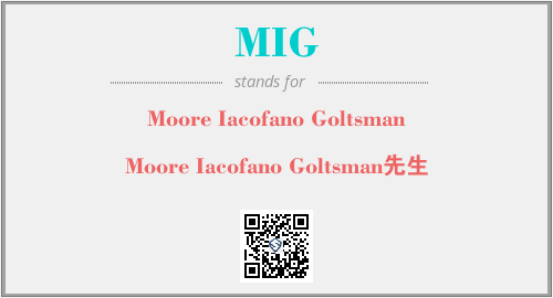 上述内容是“Moore Iacofano Goltsman”作为“MIG”的缩写,解释为“Moore Iacofano Goltsman先生”时的信息,以及英文缩略词MIG所代表的英文单词,其对应的中文拼音、详细解释以及在英文中的流行度和相关分类、应用领域及应用示例等。