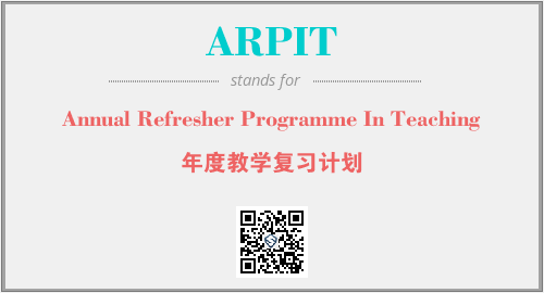 上述内容是“Annual Refresher Programme In Teaching”作为“ARPIT”的缩写,解释为“年度教学复习计划”时的信息,以及英文缩略词ARPIT所代表的英文单词,其对应的中文拼音、详细解释以及在英文中的流行度和相关分类、应用领域及应用示例等。