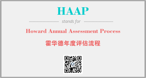 上述内容是“Howard Annual Assessment Process”作为“HAAP”的缩写,解释为“霍华德年度评估流程”时的信息,以及英文缩略词HAAP所代表的英文单词,其对应的中文拼音、详细解释以及在英文中的流行度和相关分类、应用领域及应用示例等。