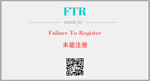 上述内容是“Failure To Register”作为“FTR”的缩写,解释为“未能注册”时的信息,以及英文缩略词FTR所代表的英文单词,其对应的中文拼音、详细解释以及在英文中的流行度和相关分类、应用领域及应用示例等。