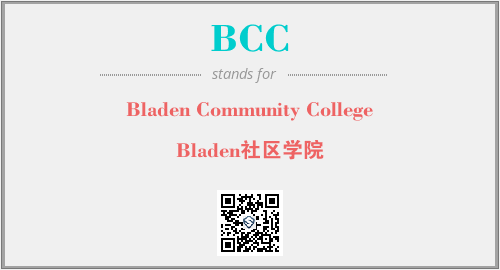 上述内容是“Bladen Community College”作为“BCC”的缩写,解释为“Bladen社区学院”时的信息,以及英文缩略词BCC所代表的英文单词,其对应的中文拼音、详细解释以及在英文中的流行度和相关分类、应用领域及应用示例等。