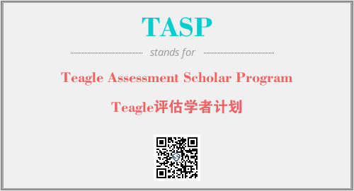 上述内容是“Teagle Assessment Scholar Program”作为“TASP”的缩写,解释为“Teagle评估学者计划”时的信息,以及英文缩略词TASP所代表的英文单词,其对应的中文拼音、详细解释以及在英文中的流行度和相关分类、应用领域及应用示例等。