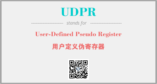 上述内容是“User-Defined Pseudo Register”作为“UDPR”的缩写,解释为“用户定义伪寄存器”时的信息,以及英文缩略词UDPR所代表的英文单词,其对应的中文拼音、详细解释以及在英文中的流行度和相关分类、应用领域及应用示例等。