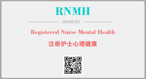 英文缩略词“RNMH”经常作为“Registered Nurse Mental Health”的英文缩写来使用,中文表示:“注册护士心理健康”。本文将详细介绍英文缩写词RNMH所代表英文单词,其对应的中文拼音、详细解释以及在英语中的流行度。此外,还有关于缩略词RNMH的分类、应用领域及相关应用示例等。