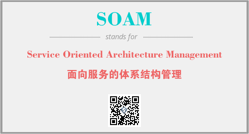 英文缩略词“SOAM”经常作为“Service Oriented Architecture Management”的英文缩写来使用,中文表示:“面向服务的体系结构管理”。本文将详细介绍英文缩写词SOAM所代表英文单词,其对应的中文拼音、详细解释以及在英语中的流行度。此外,还有关于缩略词SOAM的分类、应用领域及相关应用示例等。