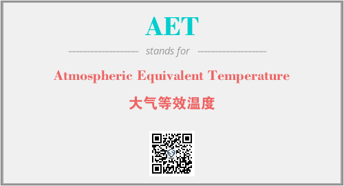 上述内容是“Atmospheric Equivalent Temperature”作为“AET”的缩写,解释为“大气等效温度”时的信息,以及英文缩略词AET所代表的英文单词,其对应的中文拼音、详细解释以及在英文中的流行度和相关分类、应用领域及应用示例等。