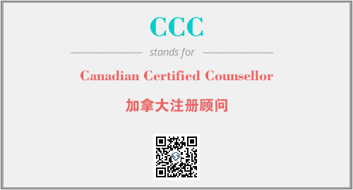 上述内容是“Canadian Certified Counsellor”作为“CCC”的缩写,解释为“加拿大注册顾问”时的信息,以及英文缩略词CCC所代表的英文单词,其对应的中文拼音、详细解释以及在英文中的流行度和相关分类、应用领域及应用示例等。