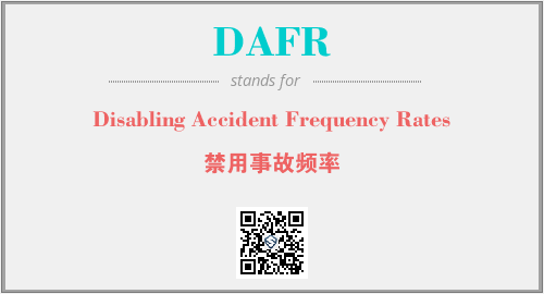 以上为Disabling Accident Frequency Rates英文缩略词DAFR的中文解释,以及该英文缩写在英语的流行度、分类和应用领域方面的信息。