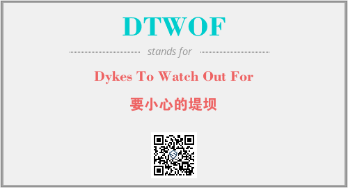 上述内容是“Dykes To Watch Out For”作为“DTWOF”的缩写,解释为“要小心的堤坝”时的信息,以及英文缩略词DTWOF所代表的英文单词,其对应的中文拼音、详细解释以及在英文中的流行度和相关分类、应用领域及应用示例等。