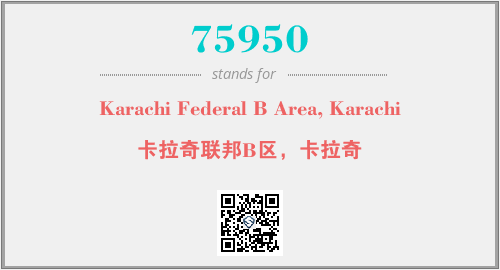 上述内容是“Karachi Federal B Area, Karachi”作为“75950”的缩写,解释为“卡拉奇联邦B区,卡拉奇”时的信息,以及英文缩略词75950所代表的英文单词,其对应的中文拼音、详细解释以及在英文中的流行度和相关分类、应用领域及应用示例等。