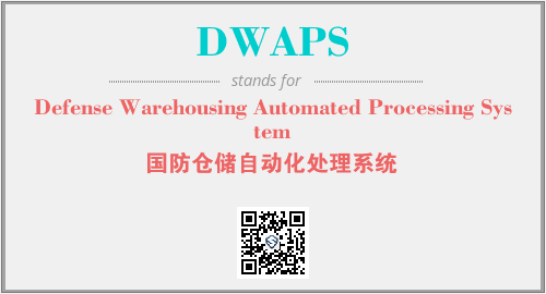 上述内容是“Defense Warehousing Automated Processing System”作为“DWAPS”的缩写,解释为“国防仓储自动化处理系统”时的信息,以及英文缩略词DWAPS所代表的英文单词,其对应的中文拼音、详细解释以及在英文中的流行度和相关分类、应用领域及应用示例等。