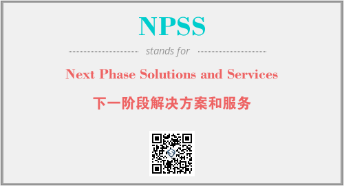 上述内容是“Next Phase Solutions and Services”作为“NPSS”的缩写,解释为“下一阶段解决方案和服务”时的信息,以及英文缩略词NPSS所代表的英文单词,其对应的中文拼音、详细解释以及在英文中的流行度和相关分类、应用领域及应用示例等。