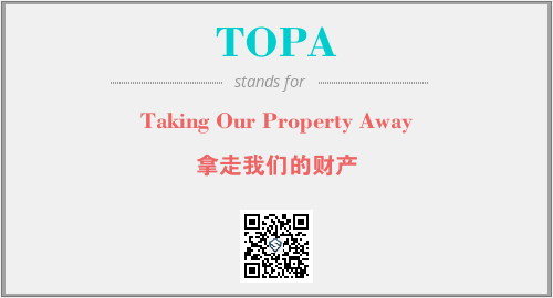 以上为Taking Our Property Away英文缩略词TOPA的中文解释,以及该英文缩写在英语的流行度、分类和应用领域方面的信息。