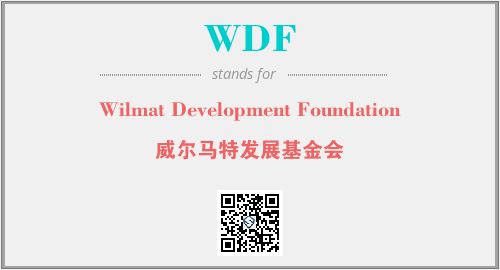 上述内容是“Wilmat Development Foundation”作为“WDF”的缩写,解释为“威尔马特发展基金会”时的信息,以及英文缩略词WDF所代表的英文单词,其对应的中文拼音、详细解释以及在英文中的流行度和相关分类、应用领域及应用示例等。