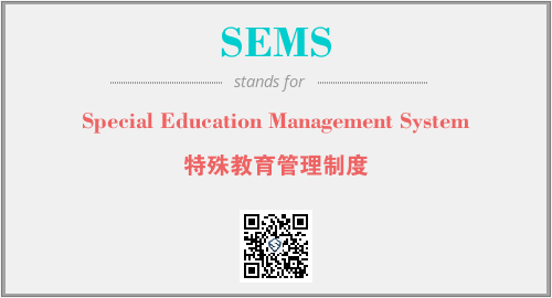 英文缩略词“SEMS”经常作为“Special Education Management System”的英文缩写来使用,中文表示:“特殊教育管理制度”。本文将详细介绍英文缩写词SEMS所代表英文单词,其对应的中文拼音、详细解释以及在英语中的流行度。此外,还有关于缩略词SEMS的分类、应用领域及相关应用示例等。
