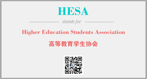 英文缩略词“HESA”经常作为“Higher Education Students Association”的英文缩写来使用,中文表示:“高等教育学生协会”。本文将详细介绍英文缩写词HESA所代表英文单词,其对应的中文拼音、详细解释以及在英语中的流行度。此外,还有关于缩略词HESA的分类、应用领域及相关应用示例等。