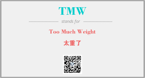 以上为Too Much Weight英文缩略词TMW的中文解释,以及该英文缩写在英语的流行度、分类和应用领域方面的信息。