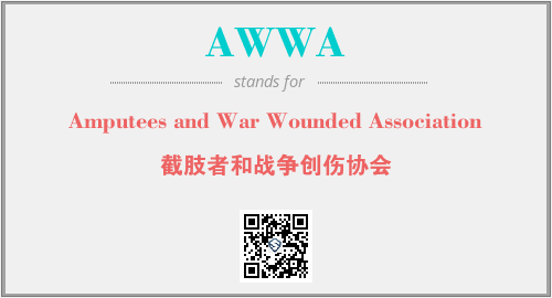 英文缩略词“AWWA”经常作为“Amputees and War Wounded Association”的英文缩写来使用,中文表示:“截肢者和战争创伤协会”。本文将详细介绍英文缩写词AWWA所代表英文单词,其对应的中文拼音、详细解释以及在英语中的流行度。此外,还有关于缩略词AWWA的分类、应用领域及相关应用示例等。