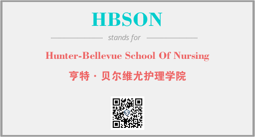 上述内容是“Hunter-Bellevue School Of Nursing”作为“HBSON”的缩写,解释为“亨特·贝尔维尤护理学院”时的信息,以及英文缩略词HBSON所代表的英文单词,其对应的中文拼音、详细解释以及在英文中的流行度和相关分类、应用领域及应用示例等。