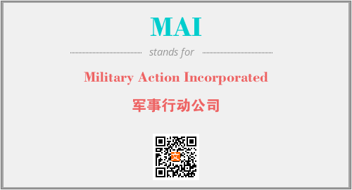 以上为Military Action Incorporated英文缩略词MAI的中文解释,以及该英文缩写在英语的流行度、分类和应用领域方面的信息。