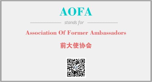 英文缩略词“AOFA”经常作为“Association Of Former Ambassadors”的英文缩写来使用,中文表示:“前大使协会”。本文将详细介绍英文缩写词AOFA所代表英文单词,其对应的中文拼音、详细解释以及在英语中的流行度。此外,还有关于缩略词AOFA的分类、应用领域及相关应用示例等。
