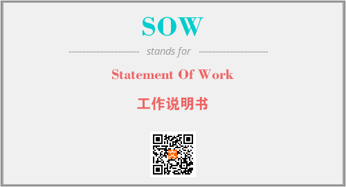 上述内容是“Statement Of Work”作为“SOW”的缩写,解释为“工作说明书”时的信息,以及英文缩略词SOW所代表的英文单词,其对应的中文拼音、详细解释以及在英文中的流行度和相关分类、应用领域及应用示例等。