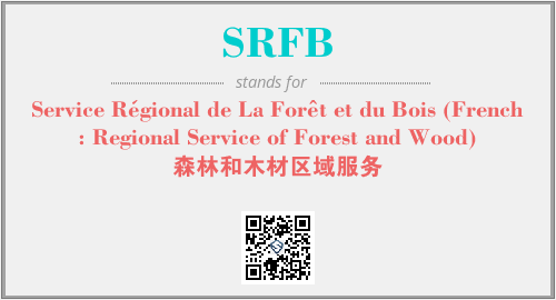 上述内容是“Service Régional de La Forêt et du Bois (French: Regional Service of Forest and Wood)”作为“SRFB”的缩写,解释为“森林和木材区域服务”时的信息,以及英文缩略词SRFB所代表的英文单词,其对应的中文拼音、详细解释以及在英文中的流行度和相关分类、应用领域及应用示例等。