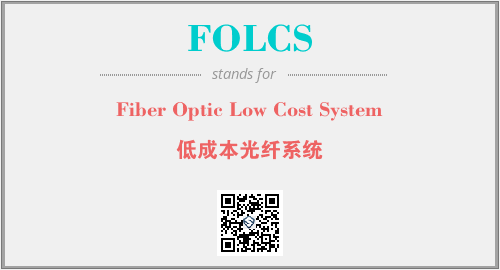 上述内容是“Fiber Optic Low Cost System”作为“FOLCS”的缩写,解释为“低成本光纤系统”时的信息,以及英文缩略词FOLCS所代表的英文单词,其对应的中文拼音、详细解释以及在英文中的流行度和相关分类、应用领域及应用示例等。
