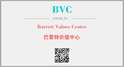 上述内容是“Barrett Values Centre”作为“BVC”的缩写,解释为“巴雷特价值中心”时的信息,以及英文缩略词BVC所代表的英文单词,其对应的中文拼音、详细解释以及在英文中的流行度和相关分类、应用领域及应用示例等。