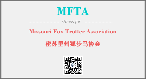 上述内容是“Missouri Fox Trotter Association”作为“MFTA”的缩写,解释为“密苏里州狐步马协会”时的信息,以及英文缩略词MFTA所代表的英文单词,其对应的中文拼音、详细解释以及在英文中的流行度和相关分类、应用领域及应用示例等。