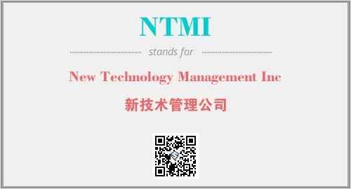 上述内容是“New Technology Management Inc”作为“NTMI”的缩写,解释为“新技术管理公司”时的信息,以及英文缩略词NTMI所代表的英文单词,其对应的中文拼音、详细解释以及在英文中的流行度和相关分类、应用领域及应用示例等。