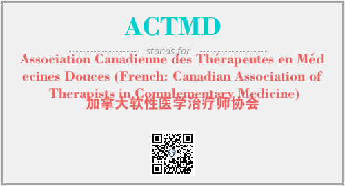 上述内容是“Association Canadienne des Thérapeutes en Médecines Douces (French: Canadian Association of Therapists in Complementary Medicine)”作为“ACTMD”的缩写,解释为“加拿大软性医学治疗师协会”时的信息,以及英文缩略词ACTMD所代表的英文单词,其对应的中文拼音、详细解释以及在英文中的流行度和相关分类、应用领域及应用示例等。