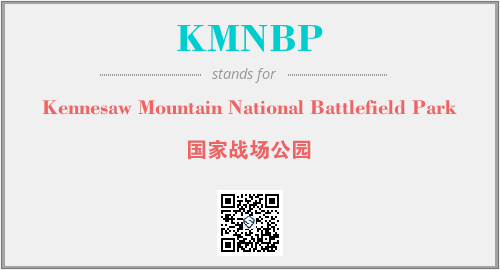 上述内容是“Kennesaw Mountain National Battlefield Park”作为“KMNBP”的缩写,解释为“国家战场公园”时的信息,以及英文缩略词KMNBP所代表的英文单词,其对应的中文拼音、详细解释以及在英文中的流行度和相关分类、应用领域及应用示例等。