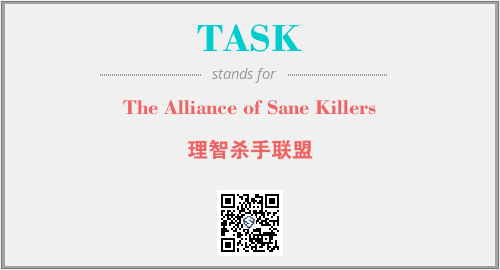上述内容是“The Alliance of Sane Killers”作为“TASK”的缩写,解释为“理智杀手联盟”时的信息,以及英文缩略词TASK所代表的英文单词,其对应的中文拼音、详细解释以及在英文中的流行度和相关分类、应用领域及应用示例等。