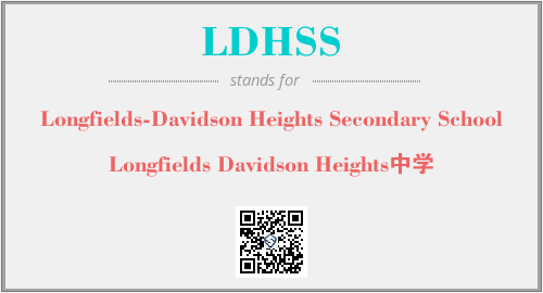 英文缩略词“LDHSS”经常作为“Longfields-Davidson Heights Secondary School”的英文缩写来使用,中文表示:“Longfields Davidson Heights中学”。本文将详细介绍英文缩写词LDHSS所代表英文单词,其对应的中文拼音、详细解释以及在英语中的流行度。此外,还有关于缩略词LDHSS的分类、应用领域及相关应用示例等。