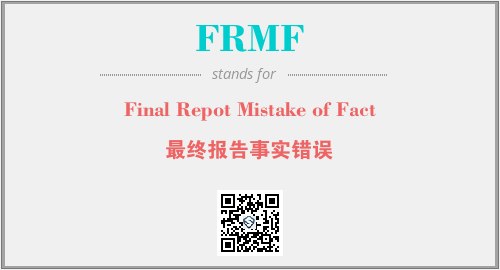 以上为Final Repot Mistake of Fact英文缩略词FRMF的中文解释,以及该英文缩写在英语的流行度、分类和应用领域方面的信息。