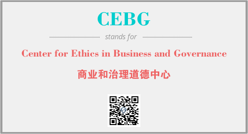 上述内容是“Center for Ethics in Business and Governance”作为“CEBG”的缩写,解释为“商业和治理道德中心”时的信息,以及英文缩略词CEBG所代表的英文单词,其对应的中文拼音、详细解释以及在英文中的流行度和相关分类、应用领域及应用示例等。