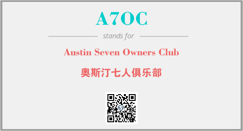 英文缩略词“A7OC”经常作为“Austin Seven Owners Club”的英文缩写来使用,中文表示:“奥斯汀七人俱乐部”。本文将详细介绍英文缩写词A7OC所代表英文单词,其对应的中文拼音、详细解释以及在英语中的流行度。此外,还有关于缩略词A7OC的分类、应用领域及相关应用示例等。